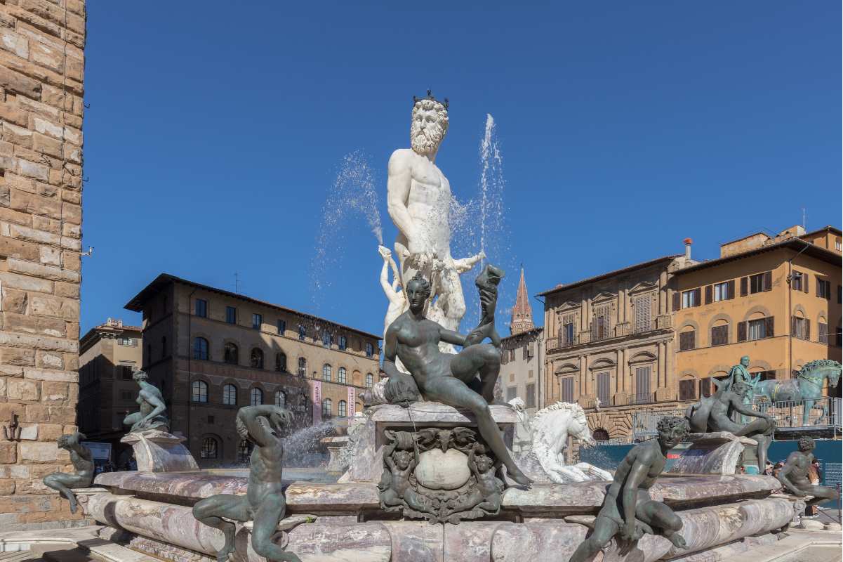 La fuente fue restaurada en el año 2018 y lleva de pie desde el año 1574 en la Piazza Della Signoria, la escultura duró aproximadamente 10 años en ser terminada llevándose a cabo durante el reinado de Cosme I de Medicis, puesto que soñaba con convertir Florencia en una potencia naval.