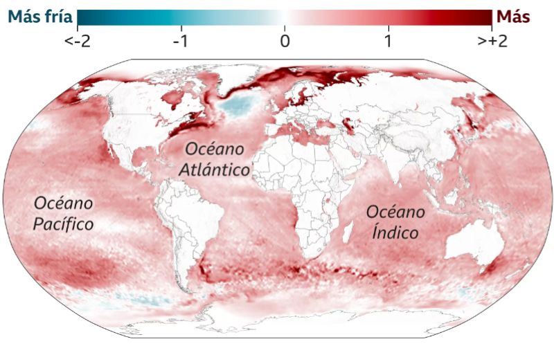 Uno de los fenómenos es El Niño, este se trata de un sistema meteorológico que calienta el océano, que según los científicos este año afectara con mucha intensidad el mundo, y algo muy preocupante es que, a consecuencia de esas altas temperaturas, los océanos podrían hacer desaparecer la vida marina.