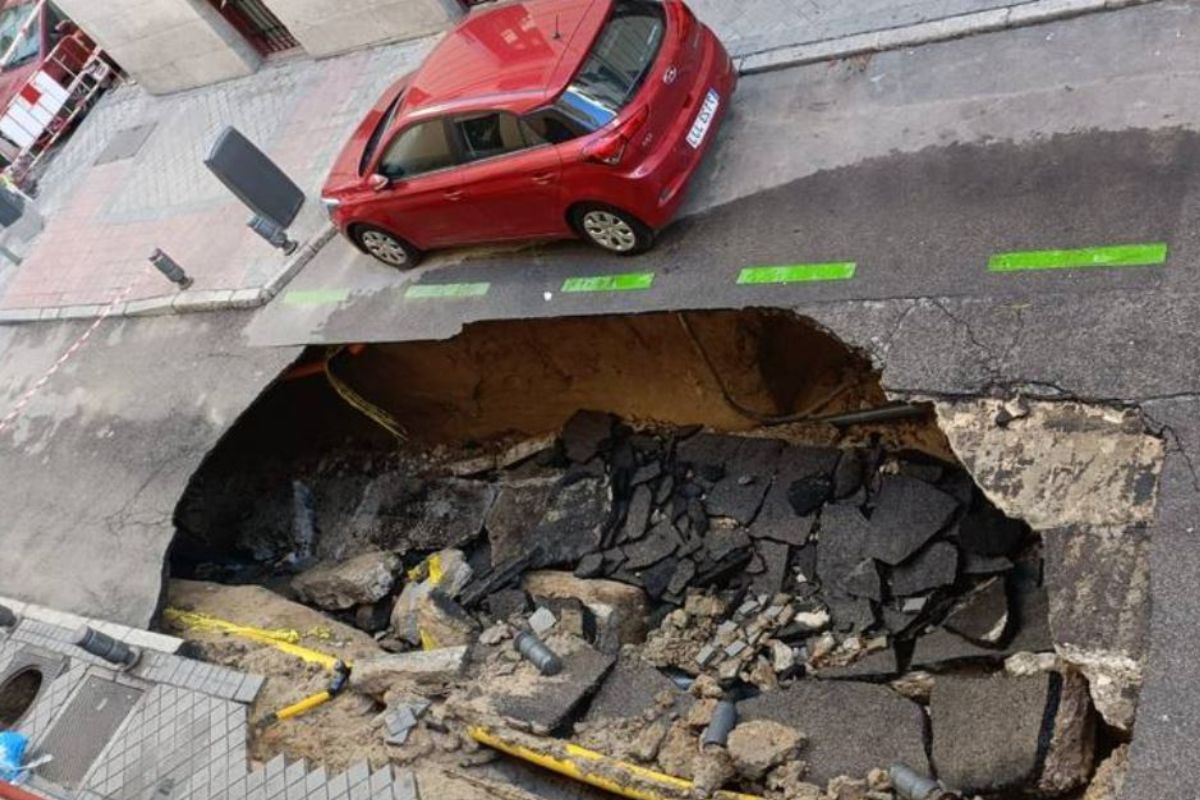 El adolescente se percató con su dron aéreo que el vehículo empezó a llenarse de agua debido a las fuertes lluvias que fueron causante de haber provocado el socavón, por esa razón el auto solo le quedaba un hueco de 15 centímetros para que las personas pudieran respirar.