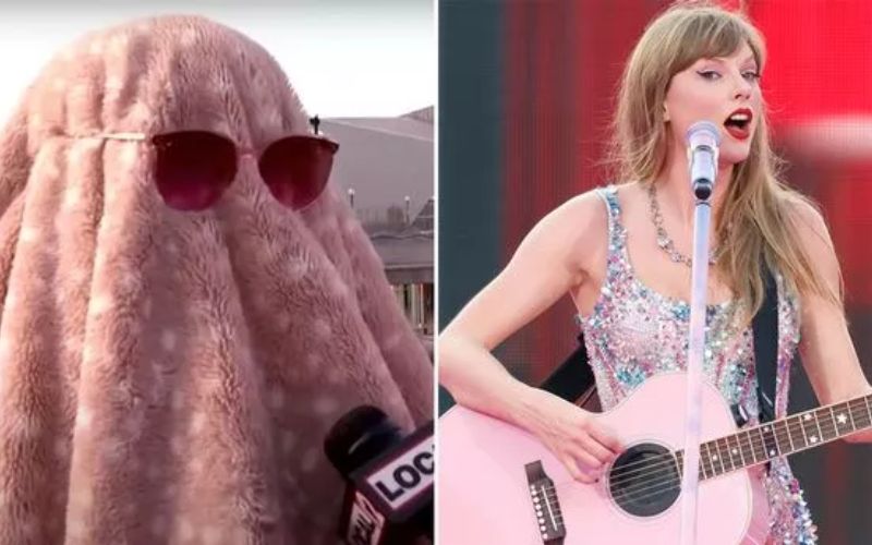Fans de Taylor Swift, se hace viral, tras dar entrevista cubierta con una manta