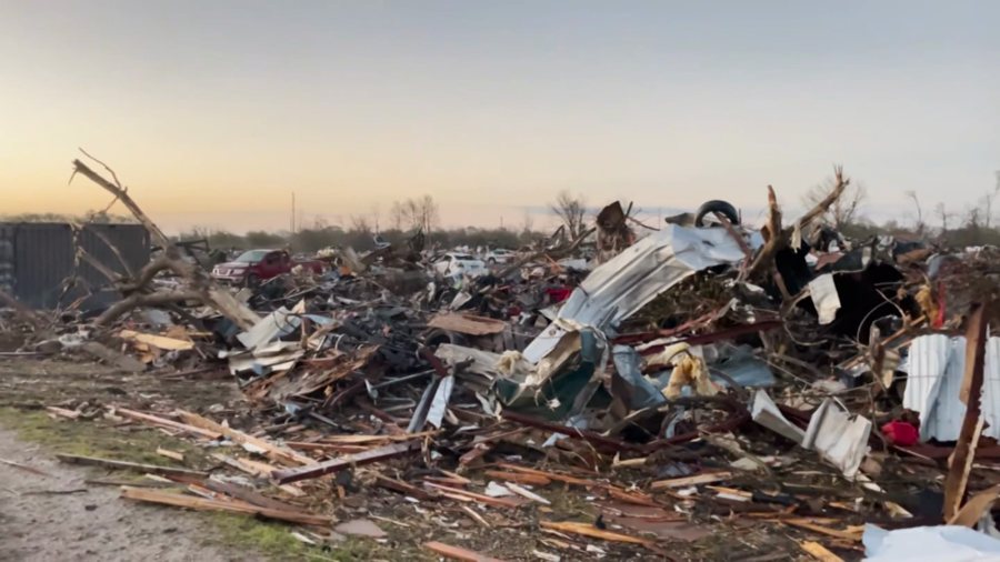 Las imágenes captadas por un dron mostraron la magnitud de la devastación que dejo el tornado a su paso, reduciendo las casas a escombros, volcando coches y derribando la torre de agua de la ciudad.