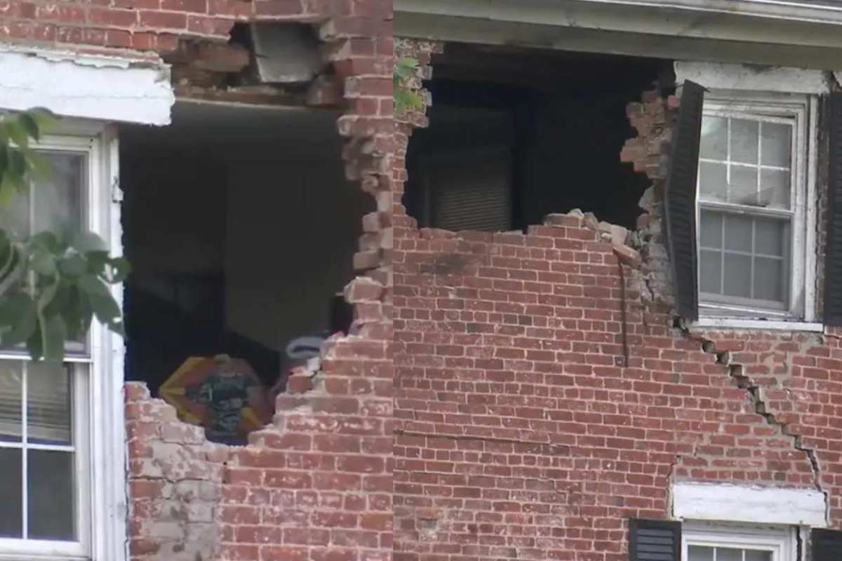 El choque fue tan grande que el motor del auto salió disparado del vehículo y se estrelló contra un segundo piso de una casa de ladrillo, el choque dejo dos grandes agujeros en la casa, con una gran grieta entre ellos.