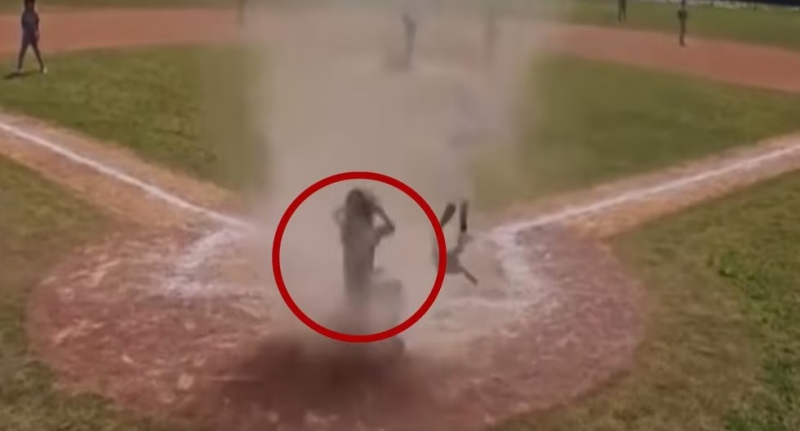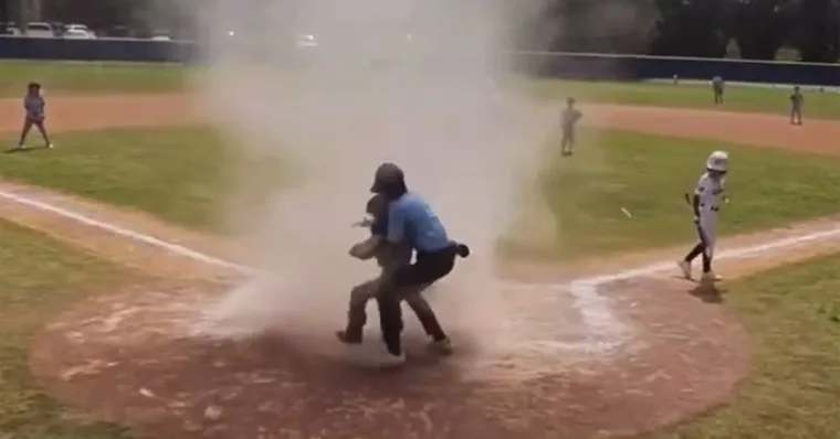 Un impactante video se ha viralizado en las redes sociales, donde se puede apreciar el impresionante momento en que un pequeño remolino en Estados Unidos, conocido localmente como “Diablo de aire”, tomó por sorpresa a un joven jugador de béisbol en el campo de la Fort Caroline Athletic Association.