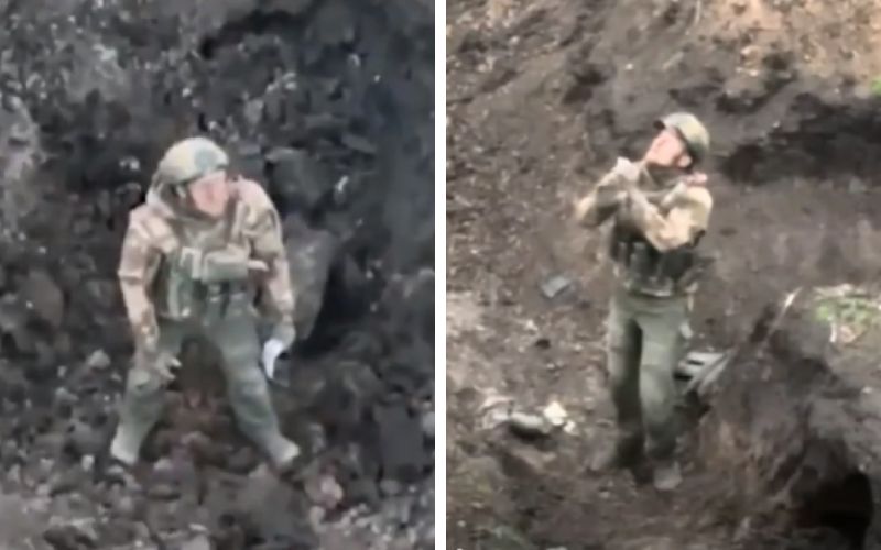 Soldado ruso es grabado rindiéndose y pidiendo perdón ante un dron que lo sobrevolaba