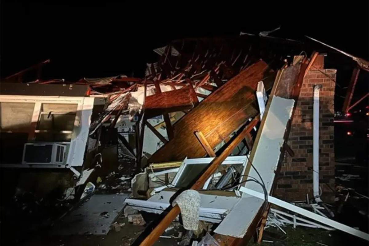 Un equipo de reconocimiento ha encontrado daños que no son consistentes en la zona, con al menos un tornado EF-2, esta calificación significa que el tornado que ocurrió en plena madrugada en los Estados Unidos tuvo vientos de 111 mph.