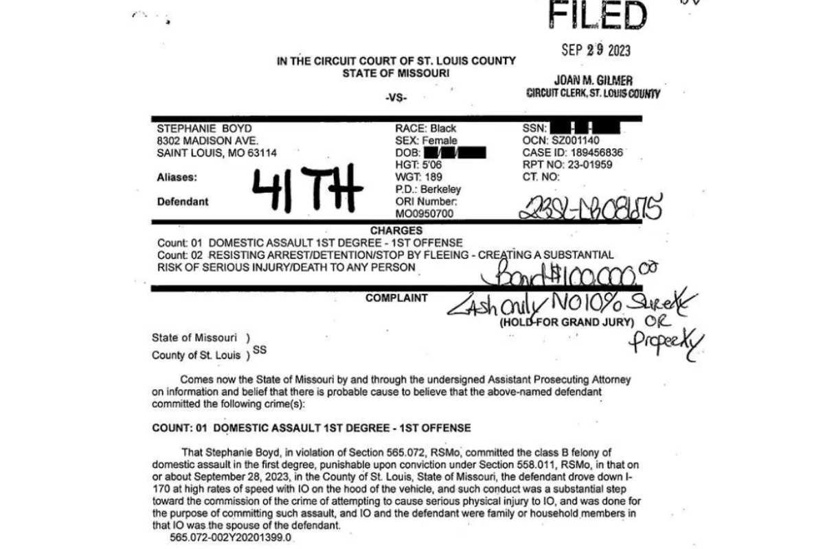 Una ciudadana de Missouri es acusada de conducir temerariamente aproximadamente 11 km con su esposo agarrado al capó del vehículo, la mujer se encuentra enfrentando cargos de delito grave luego de conducir a diferentes velocidades.